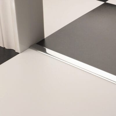 The Premier 20mm Vinyl Edge 1mm is a perfect door bar for LVT and Laminate installations where either one or both surfaces float. Can also be used on ‘Stick down’ flooring. Suitable for a 1mm lift and is ideal for use on under floor heating as it is a ‘Stick Down’ door bar. Only suitable for ‘Non Porous’ surfaces.